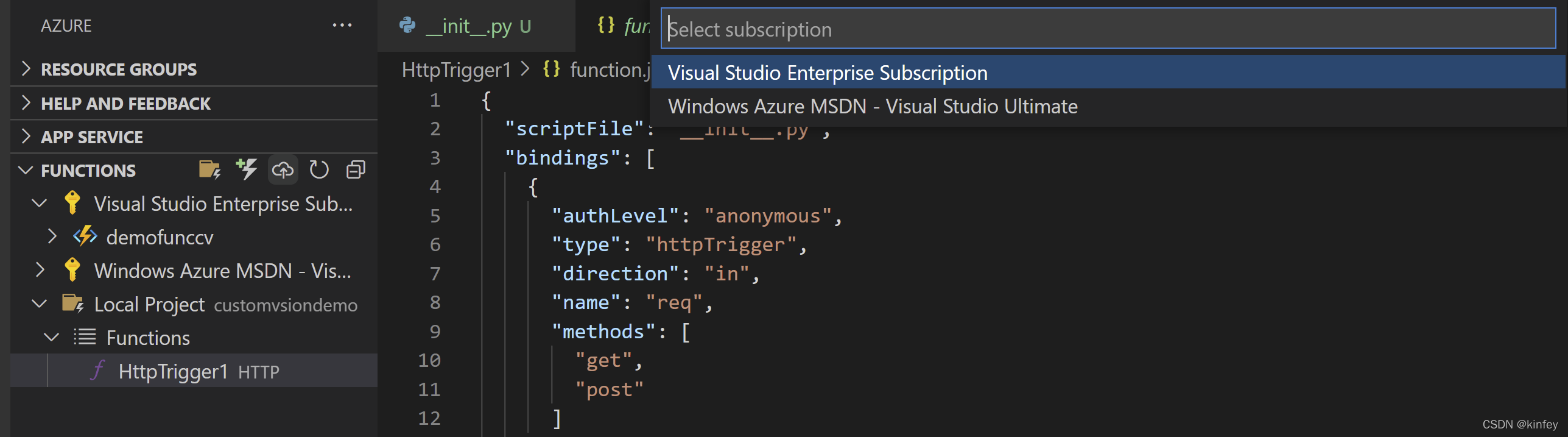 - 打开 Azure Tools 插件下 , Azure Functions 下选择好文件夹,创建一个新的 Azure Function (我这里以 Python 开发环境为例)