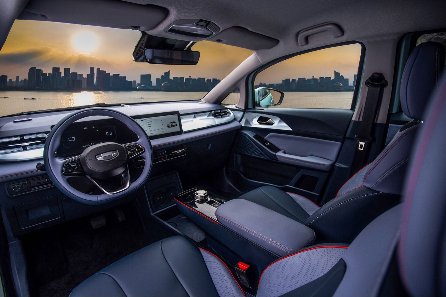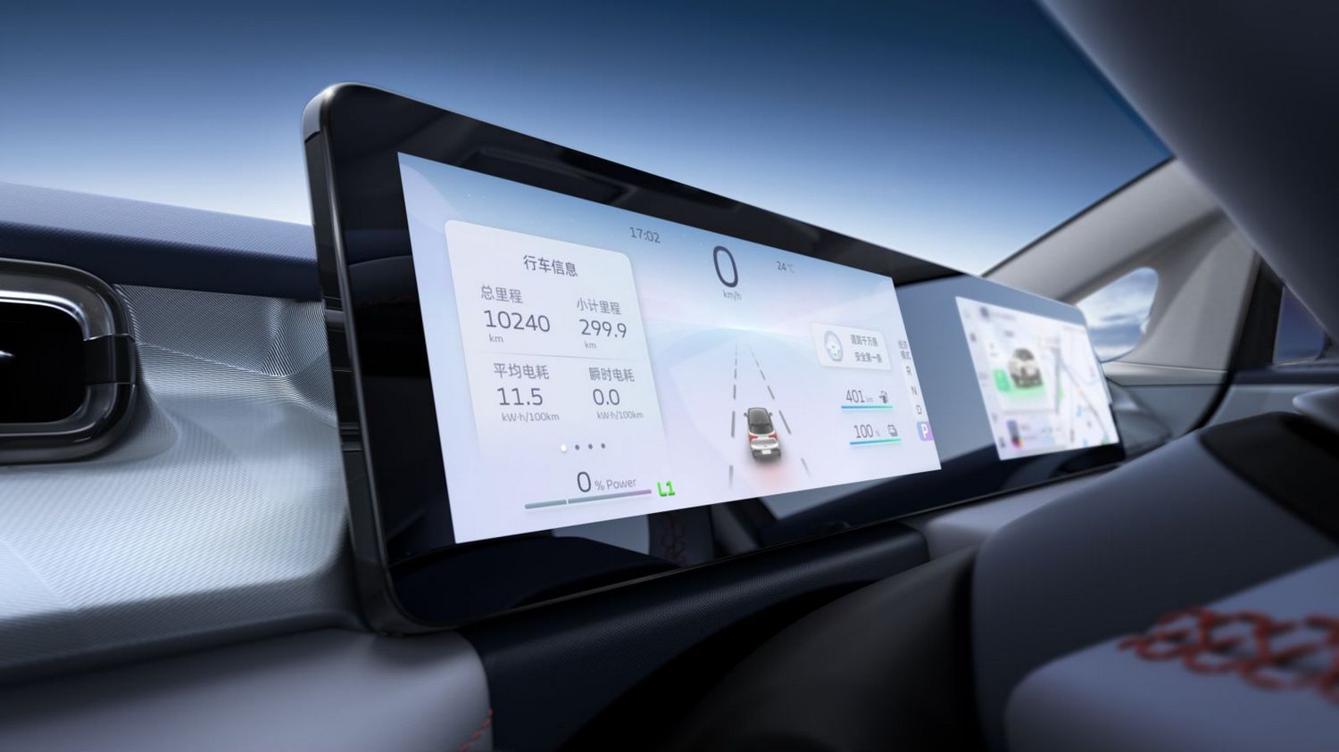 内饰方面,几何E的内饰也是采用时下电动车型主流的简约风格,较为抢眼的便是中控部分的双联屏设计。两款屏幕的尺寸均为10.25英寸,可以显示车速、路况、电量等重要信息,用户还可以根据个人需求自定义常用功能,提升使用便利性。