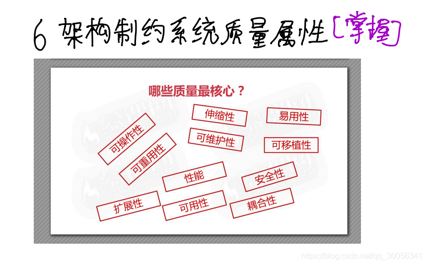 题眼:质量(扩展性、性能、可用性、安全性、耦合度)