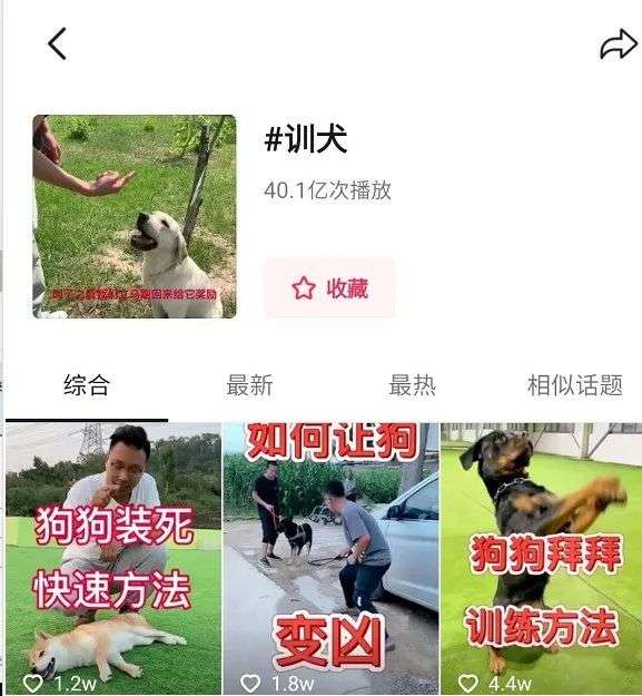 数据显示,小红书#狗狗上学#话题目前浏览量已经达到196.4万,#训犬#浏览量高达3766.9万;短视频平台上相关内容更是火爆,抖音#训犬#内容已有40.1亿次播放,#狗狗上学#已有1.1亿次播放。