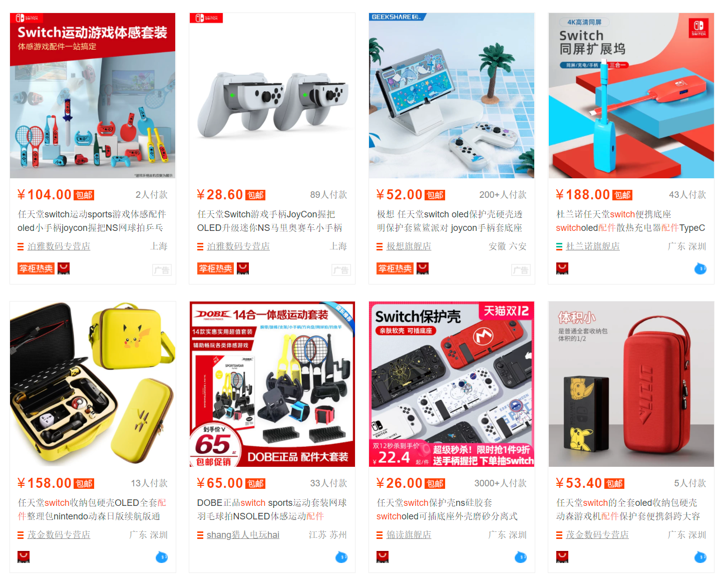 Switch激活的中国玩家群体还对一度低迷的配件行业产生了影响,在这之前国内的游戏机配件生产集中于中低端产品,消费者范围扩大后让提供更多功能、设计的高端化产品有了立足之地。从转接器到手柄握把、便携包等,配件生产借着这波东风完成了品质和业绩的多重进化。
