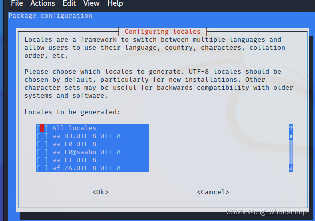 默认的en_US.UTF-8可已去掉,如果向完全汉化的话,翻到最后选择zh_CN.UTF-8,选择完后选择zh_CN.UTF-8