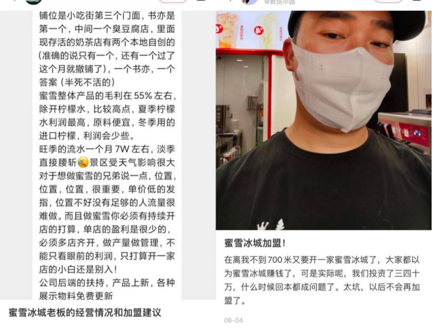 庞大的门店数量撑起了蜜雪的百亿估值,但在每一间单独门店背后,却可能是一把辛酸泪。