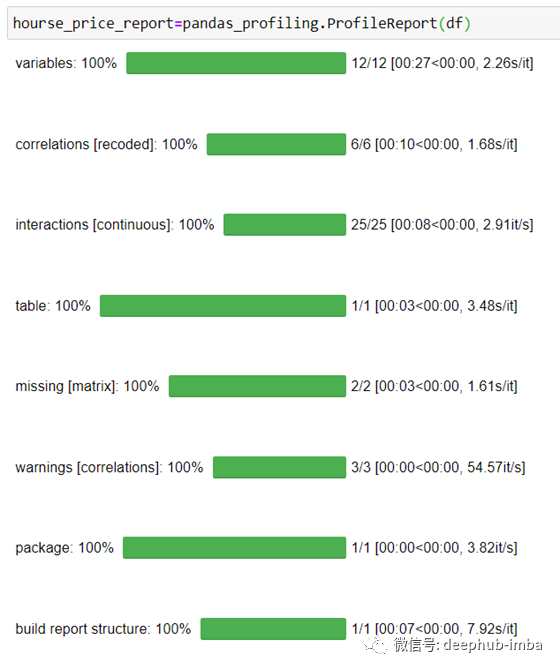 运行以下命令后,将看到进度条,该进度条根据特定参数生成数据概要分析报告。