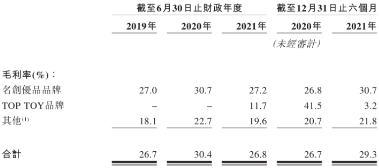 IP自研能力的不足也体现在盈利能力方面。招股书显示,2021财年,TOP TOY毛利率仅为11.7%,截至2022财年中报,TOP TOY毛利率进一步下滑至3.2%。对比来看,2021年泡泡玛特毛利率高达61.43%。