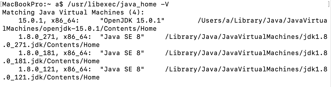 JAVA_HOME=/Library/Java/JavaVirtualMachines/jdk1.8.0_271.jdk/Contents/Home