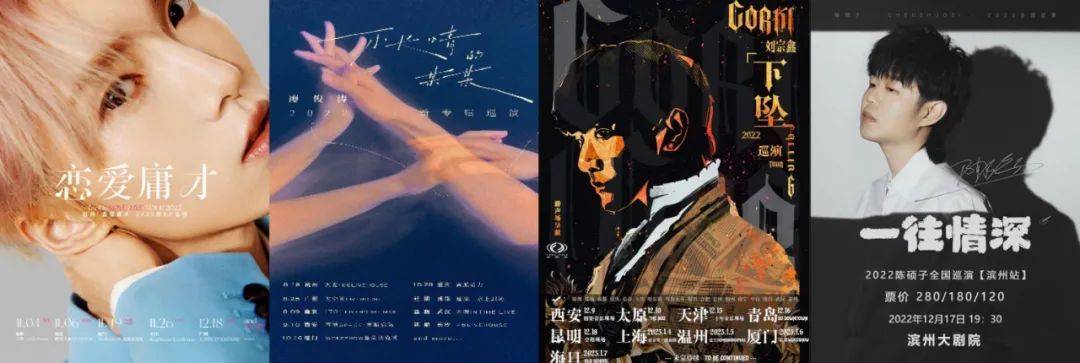 这轮复工潮还出现了偶像艺人的巡演项目,从《创造营2019》成功出道的赵磊最近将在广州、南京开启他“恋爱庸才”主题的新EP巡演,而另一档秀综《明日之子》捧出的原创歌手廖俊涛,则将在深圳开启他“不长情的某某”2022新专辑巡演。