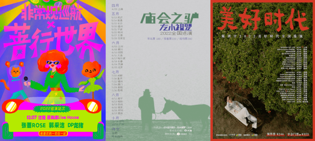 此外,还有些名气出圈的独立歌手也在近日复工,左小诅咒2022巡演的宁波站、合肥站此前都因疫情被取消,如今14号的杭州站演出开票后就异常火爆。陈鸿宇的“美好时代”巡演则幸运避开了疫情影响,将在本月和明年初分别在南京、合肥、中山、珠海、北京等多个城市开唱。