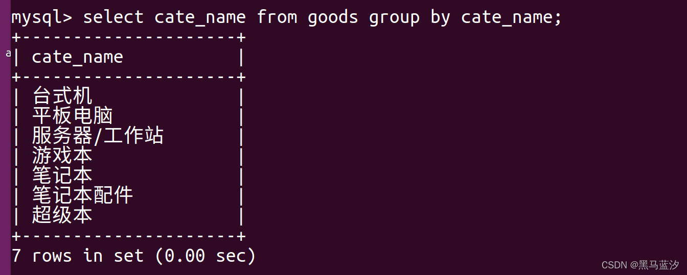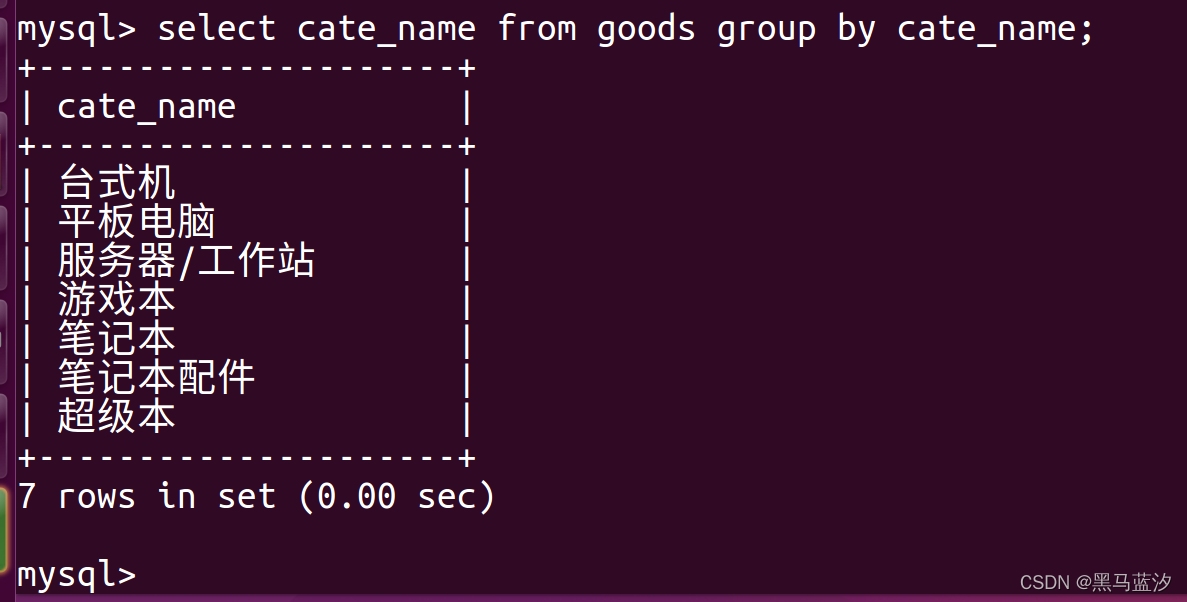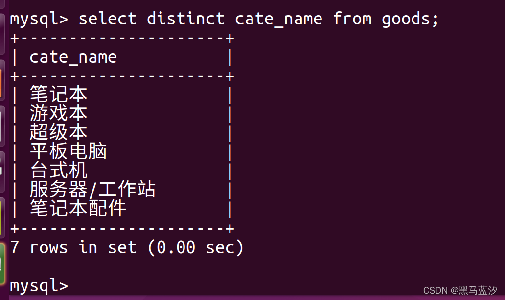 - 创建一个商品分类表,把goods表中的商品分类信息添加到该表中
