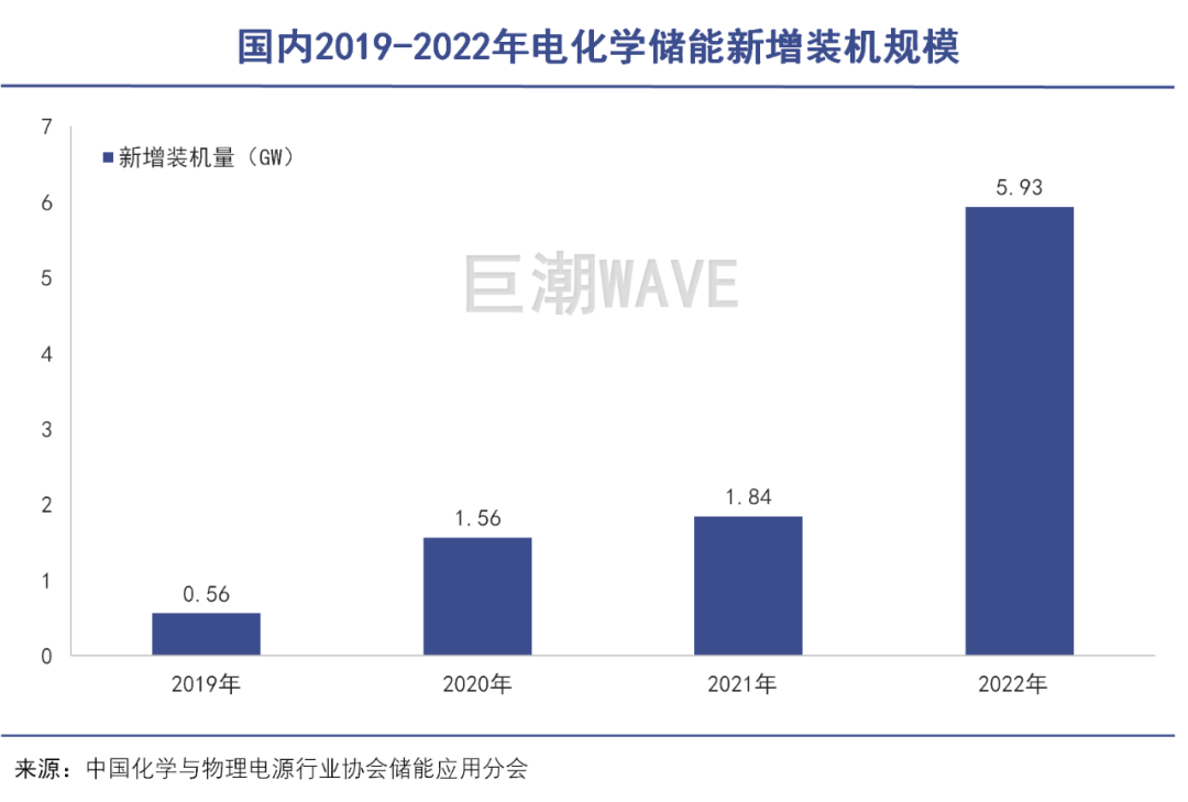 根据中国化学与物理电源行业协会储能应用分会的统计,2022年国内电化学储能新增装机规模约5.93GW,较2021年(1.84GW)增长接近两倍。即便经历了原材料涨价、疫情等多重冲击,仍然展现了极高的韧性和爆发力。