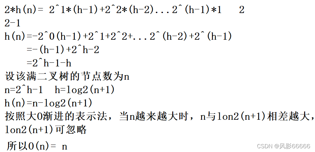若规定根节点的层数为1,具有n个结点的满二叉树的深度,h=log2(n+1)