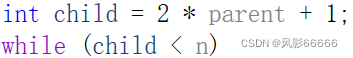 **循环判断条件为孩子节点下标小于有效数据个数 **