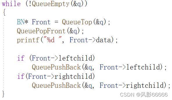 然后判断保存队头节点并删除,以便能带入左右孩子节点,如果队头节点为空,就直接跳出循环