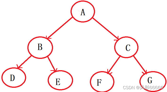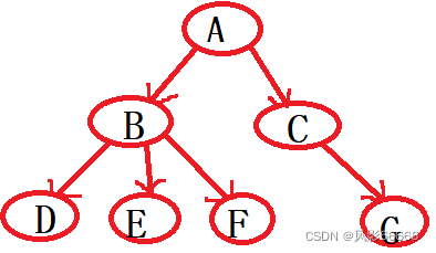 树是一种非线性结构,像是一颗倒挂着的树,根朝上,叶朝下,最上面的节点称为根节点,如下图的A