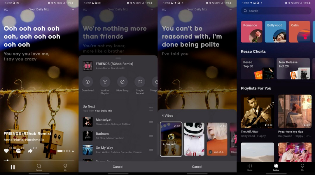 而Resso作为字节内部打造的第一款音乐类产品,也先期为汽水音乐踩出了一些路。比如已经在版权采购和曲库建设方面解决了从0开始的困境,为此Resso的上线曾耗时两年;又如在产品运营上的一些经验,尤其是和短视频产品如何打出配合并形成产业闭环。