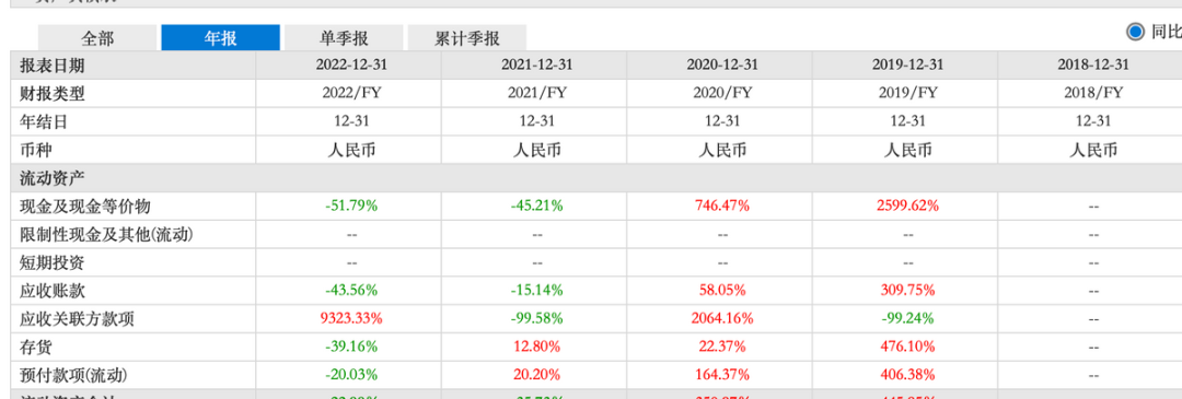 财报显示,2021年度公司应收帐款同比减少了0.63亿。值得注意的是,2021年公司的营收是同比增加的,这说明公司的业务在增长的同时,回款情况变好了。再来看2022年,这一年公司应收帐款同比减少了1.55亿,但营收反而是下滑的,而且下滑超过30%,这可能说明回款能力之外,有其他的因素影了应收账款。