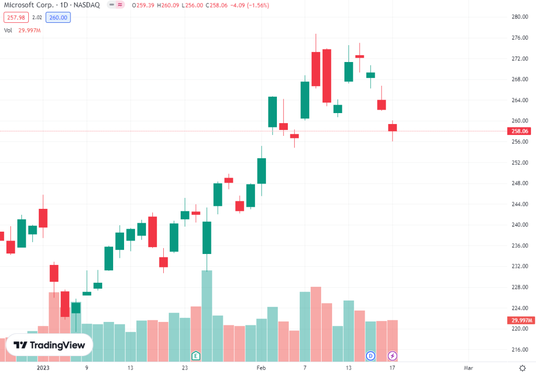 (截至目前,微软在2023年的股票表现与谷歌相比)