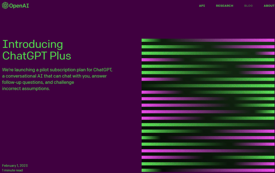 (OpenAI关于引入ChatGPT Plus的页面截图)
