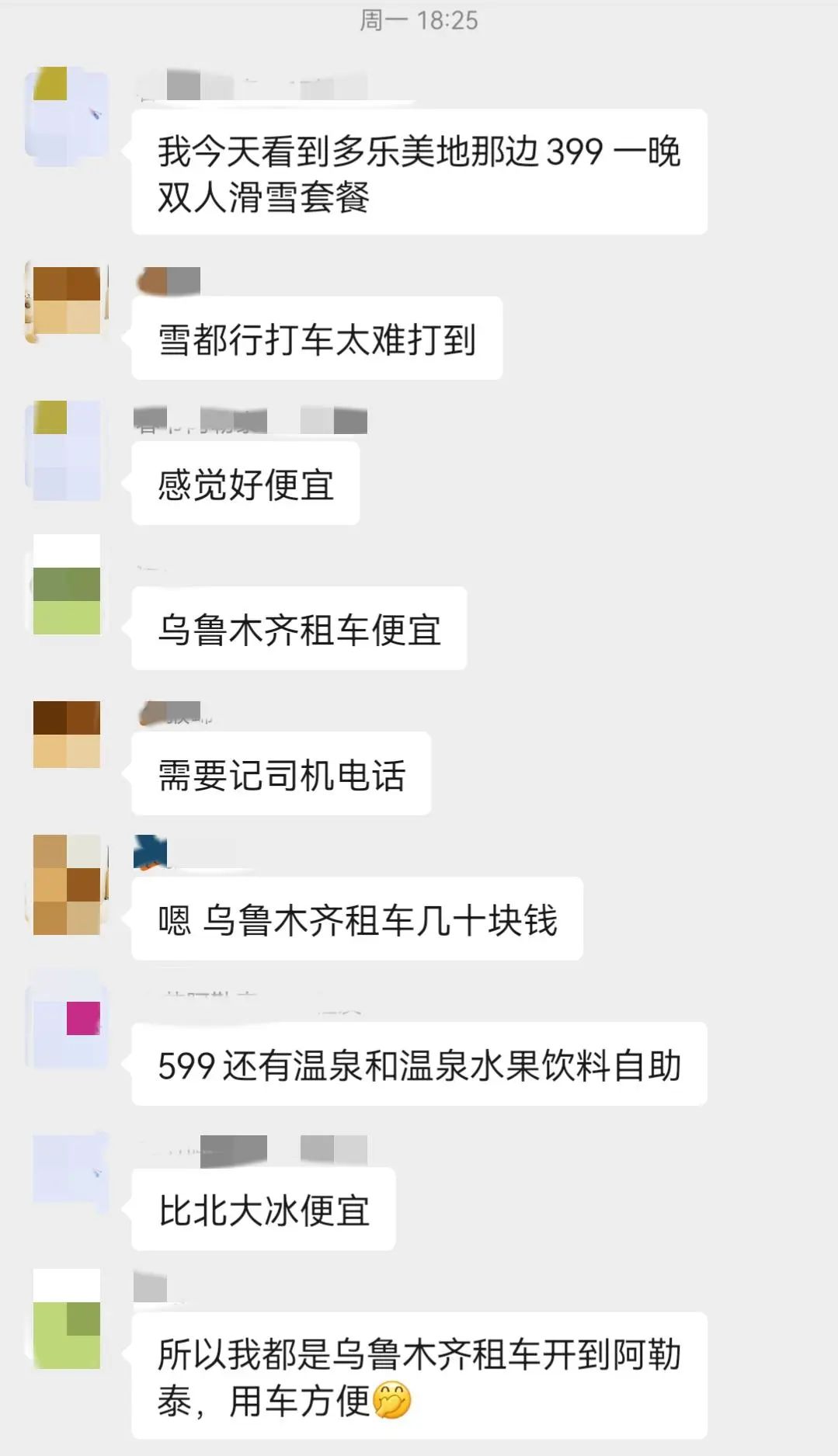 还有人在群里拼车,寻找会开车的雪友,租一辆车做到当天往返市区或县城,不在雪场附近住宿,省下一笔酒店的钱。