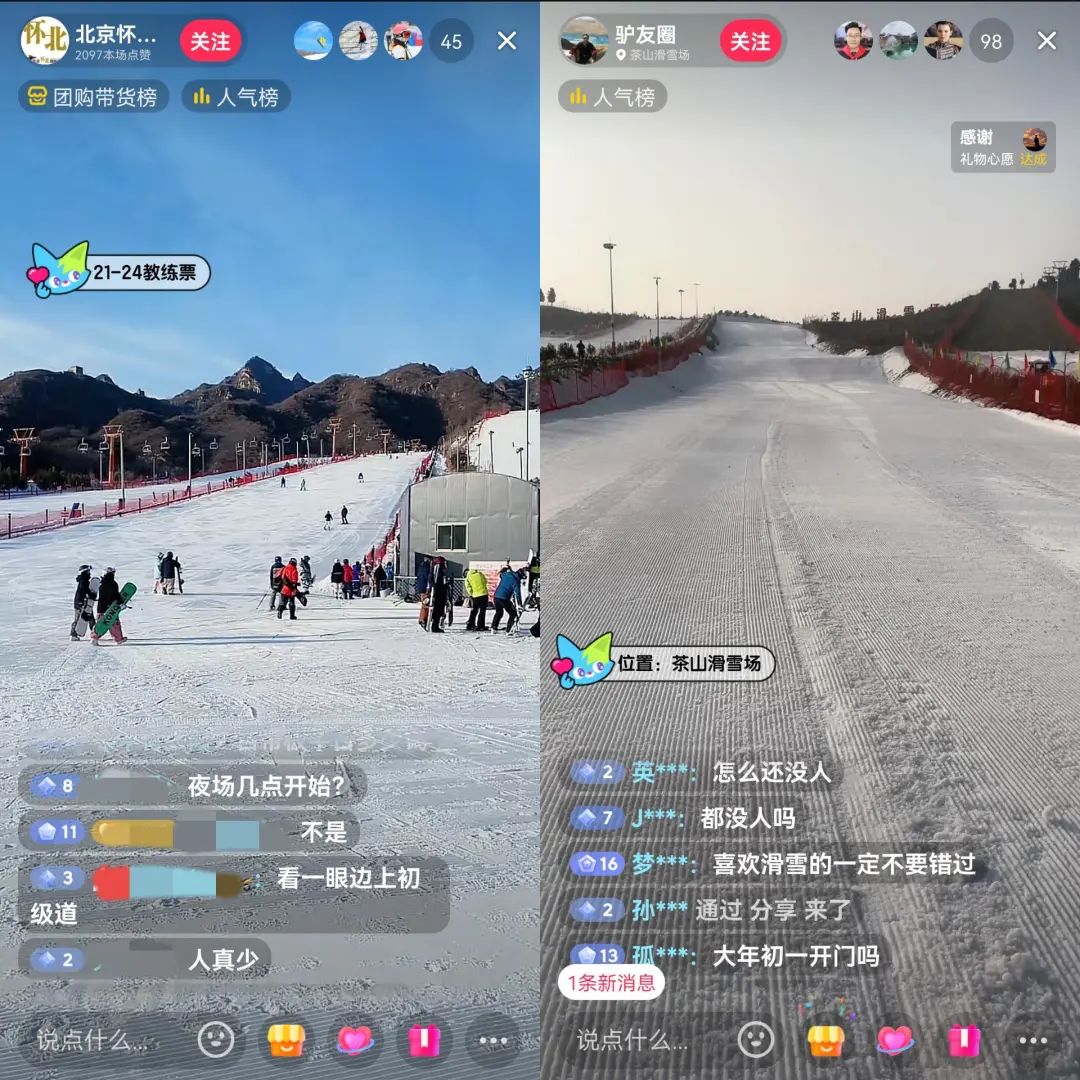 雪场直播间,不少人表示今年人少了