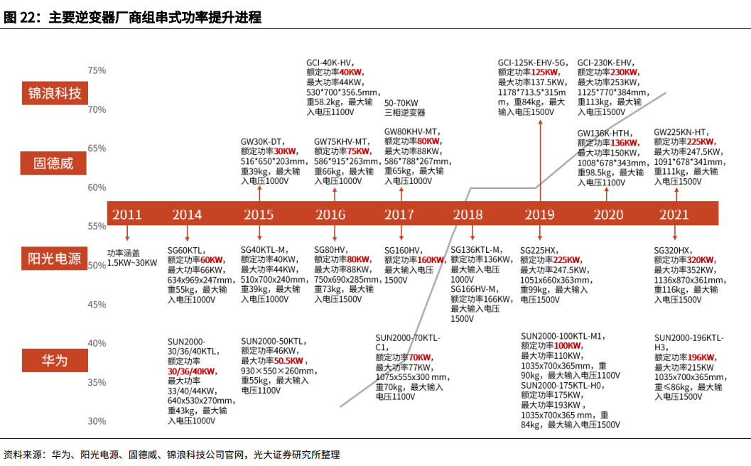 (主要逆变器厂商组串式功率提升进程 图源:光大证券研究所)