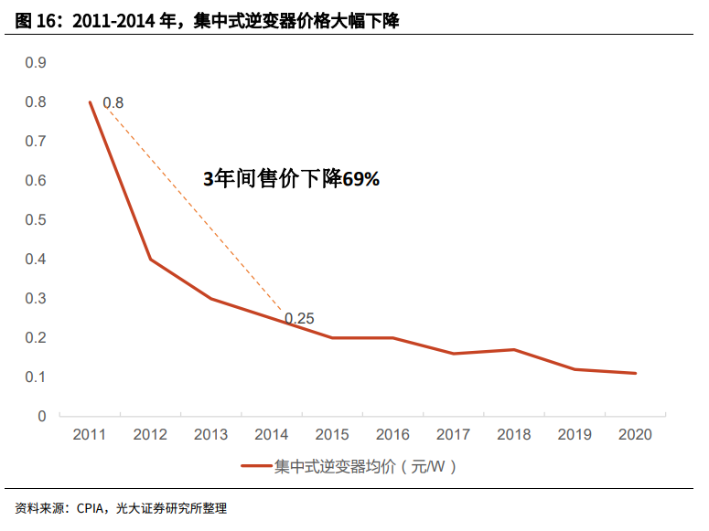 (2011-2014年集中式逆变器价格情况 图源:光大证券)
