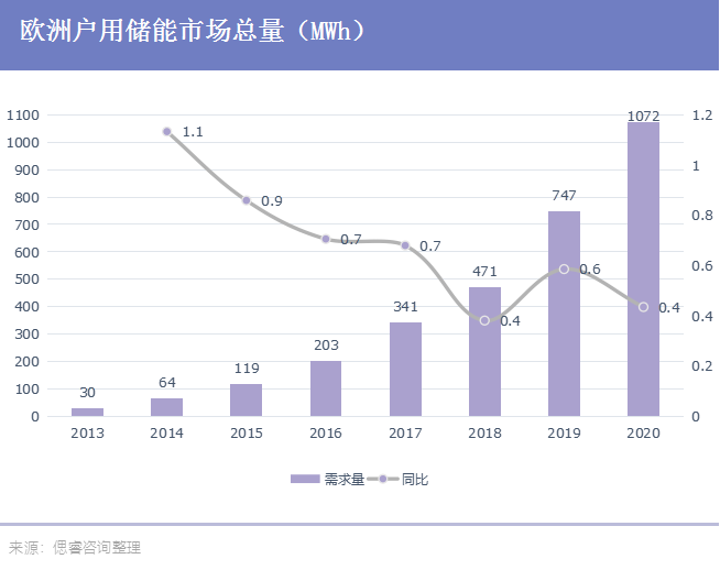 这一变化源于市场结构的改变,在2014年之后,欧洲户用储能需求上涨。