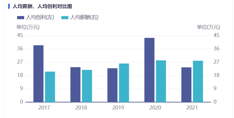 2021年度招聘了近2000多人,多数是生产、技术人员,其中包括1000多名应届生。庞大的职工基数下,当年的人均创利直线下滑。