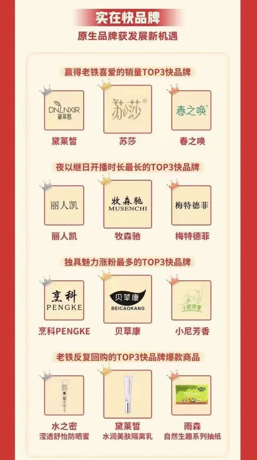 3.平台加大对“快品牌“的扶持,客观上降低了其他其他主播、品牌的流量效率。