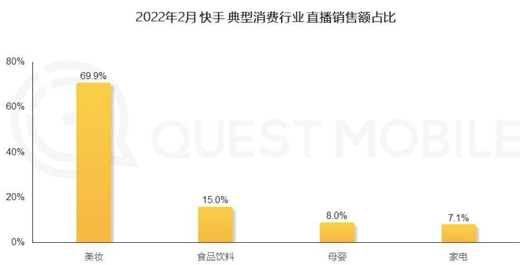 和抖音主打食品饮料类等高频低价快消品所不同,快手选择了依靠高客单价的美妆。