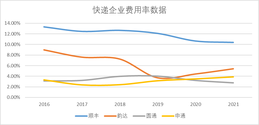 首先从“销售+管理+研发”的费用率来看,顺丰高端定位和时效件、冷链等服务种类注定了其费用率远高于同行,其次顺丰有大量自有员工,而三通一达的外包员工居多,加盟商也多,这也致使顺丰在固定成本层面支出远高于同行。