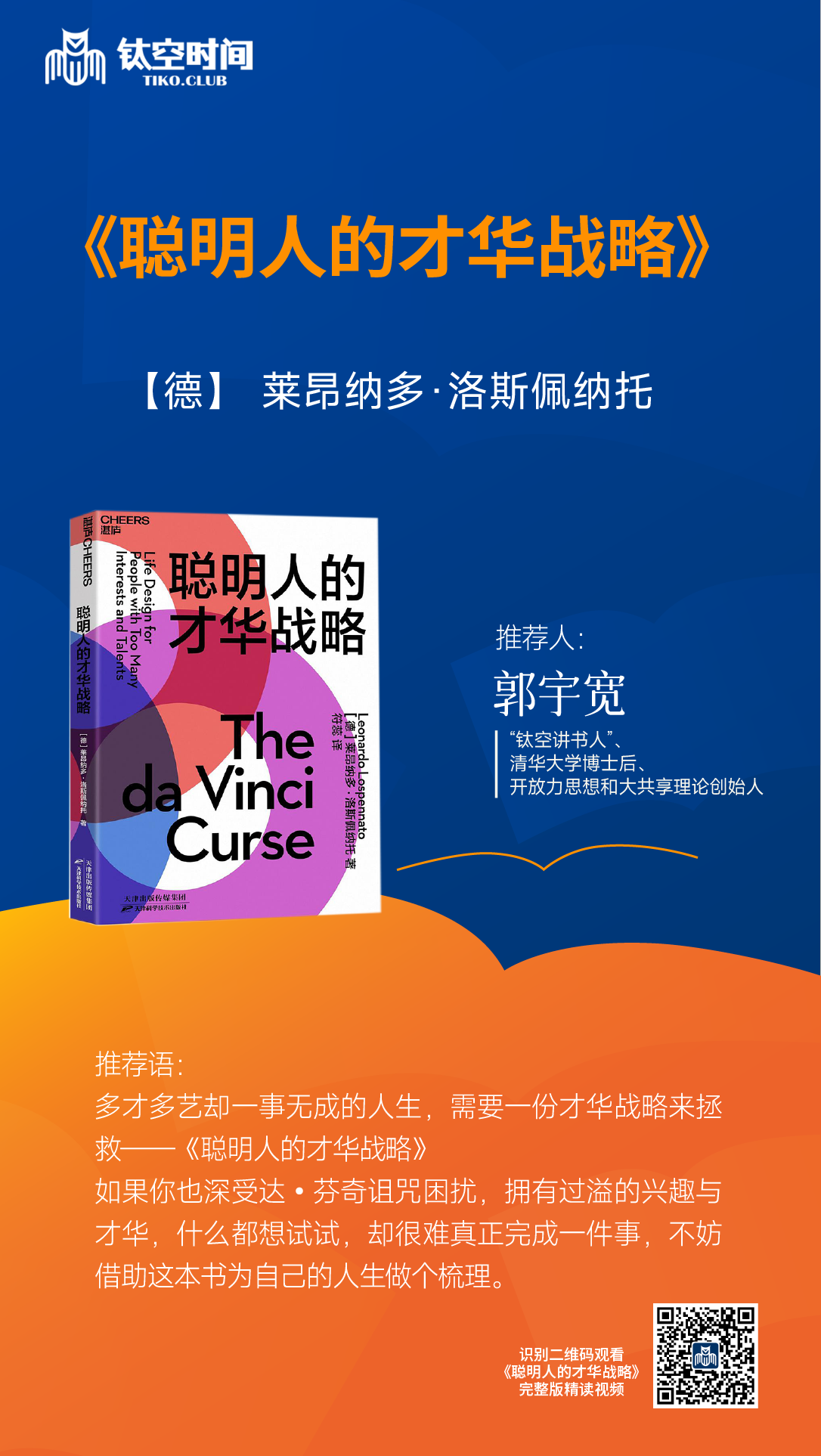 郭宇宽 “钛空时间”重磅推出的首位“钛空讲书人”,曾被称为西安交大辩论队“大儒”、灵魂辩手,清华大学博士后,学贯工学、传媒学、经济学,冯耕中、陈志武、龙登高、胡正荣等名师的亲传弟子,开放力思想和大共享理论创始人。