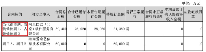 公司与阿里合作项剧目涉及的题材,来源于公司年报
