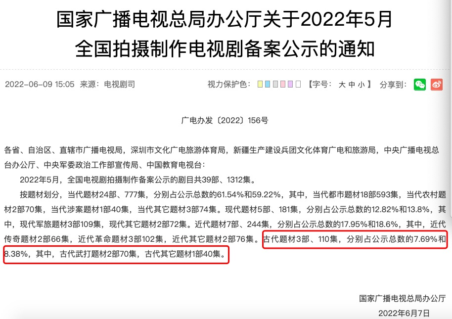 今年5月份全国拍摄制作电视剧备案公示的通知,来源于广电总局