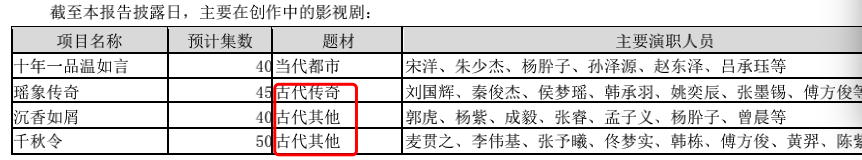公司创作中的影视剧题材类型,来源于公司年报