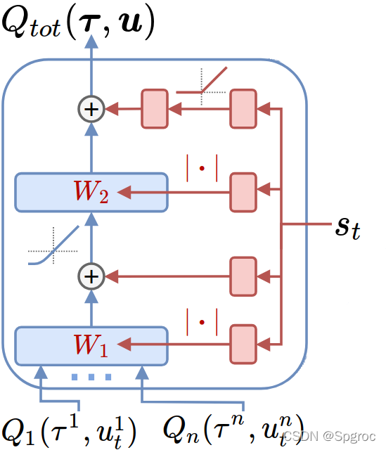 Qtot。根据IGM条件,输入为此状态下每个智能体的最大动作价值。