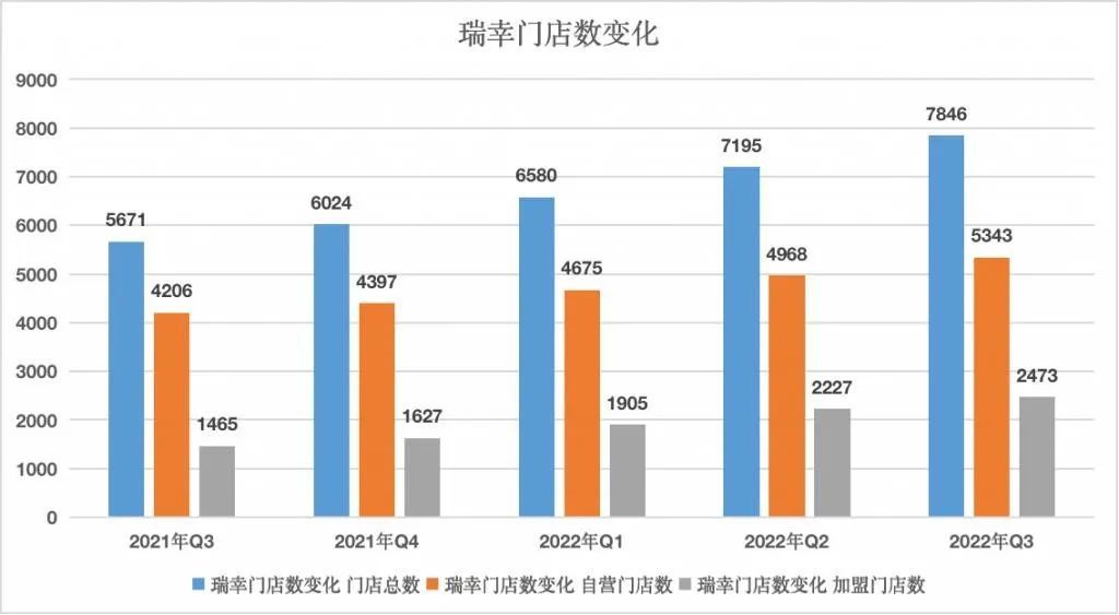 另外,财报显示,瑞幸第三季度净新开门店为651家,较2022年第二季度末的门店数量环比增长9.0%,截至第三季度末为7846家门店,其中包括5373家自营店和2473家合作店。