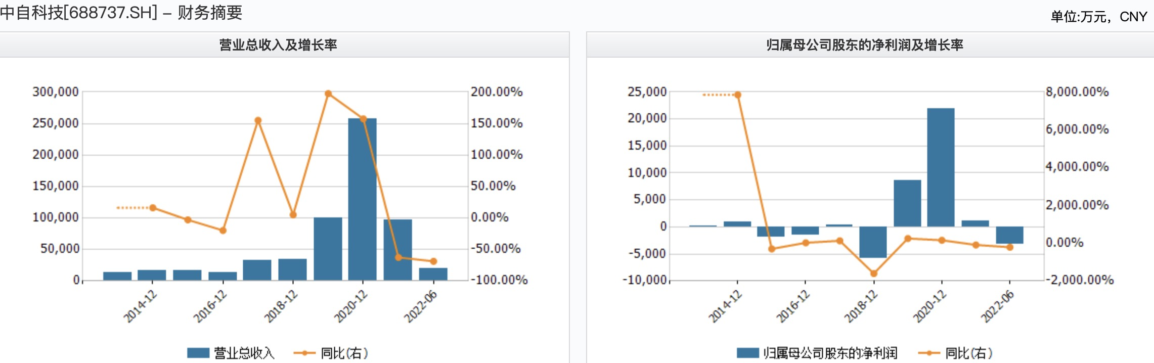 股价持续下行的背后是业绩的极速“变脸”,及至刚刚披露的2022中报亏损来看,“火眼晶晶”的市场早就给中自科技标好了价格。
