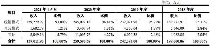 报告期内,紫燕食品采用经销连锁经营加盟模式创造的收入合计占各期公司营收的比例分别达97.34%、97.07%、95.10%和 93.21%。
