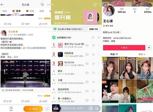 另一方面,王心凌的红利不止属于芒果TV,微博上每天至少被占据10个热搜,平台上涉及她拍过的戏唱过的歌,以及节目初舞台的播放量也达到了1945万次,抖音、小红书、QQ音乐、网易云等平台也各自赚到了王心凌的流量。