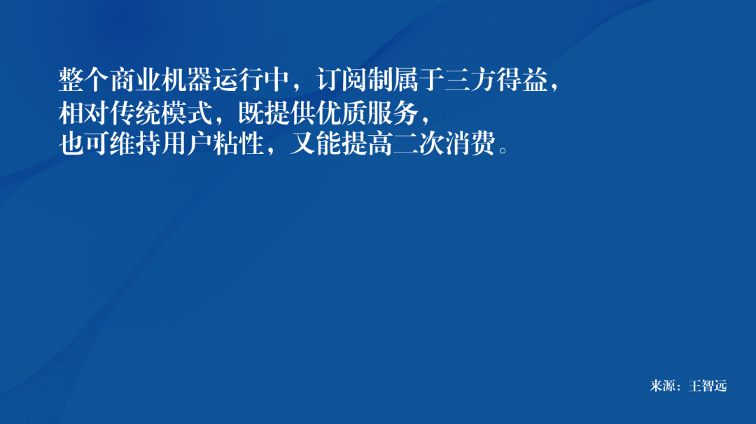 所以,整个商业机器运行中,订阅制属于三方得益,因为相对传统营销模式,这是一种既提供优质服务,也可维持用户粘性,又能提高二次消费。