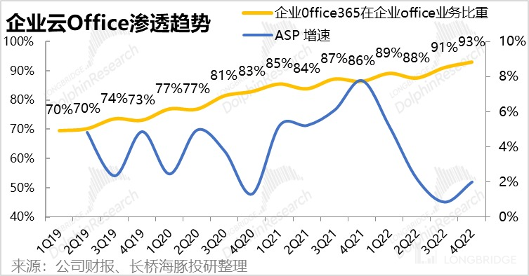 本季度,云端的 Office 365 在企业 Office 整体营收中的占比进一步提高 93%,占比进一步提升的空间已然很小。