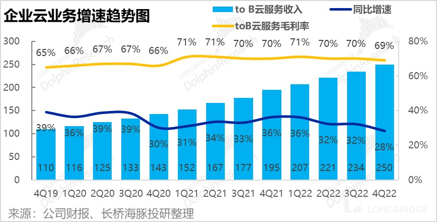 本季度未,面向企业端的合同金额余额(也即递延收入 + 未确认收入的合同金额)为 1890 亿,不仅绝对值上创新高;同比增速更是进一步提速到 34%。可见虽然本季确认收入的节奏放缓,但未来可确认的余粮还是相当充沛。