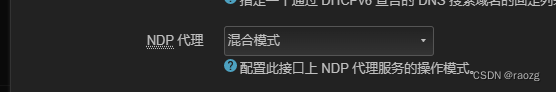 RA MTU若不是1280,可以设置为最小的1280;RA标记 选 O 表示使用本地的v6 DNS