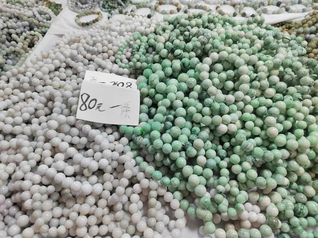 但A货翡翠内部的价格差异,远大于低品质天然翡翠和人造翡翠的价格差异。成色一般的天然翡翠商品,百元以下就能买到;成色好的翡翠商品,动辄数万,上不封顶。几乎每一个当地朋友,都劝我“挑点好看的喜欢的”,不识货的话千万别买高货。
