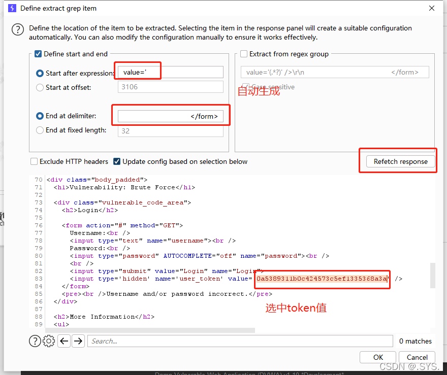 - 使用正则提取的方法绕过csrf token对爆破的限制