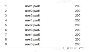 - 草叉模式(Pitchfork) :多payload位置,多payload集合, 在每个payload位置.上遍历对应的payload集合,攻击次数为最短的payload集合的元素个数