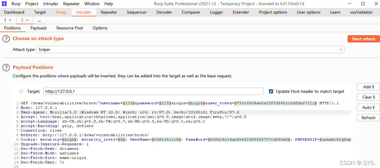 - [Clear 5] :清除所有Payload位置标志或者清除选中的Payload位置标志