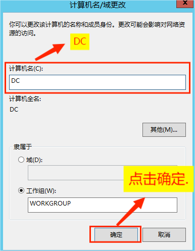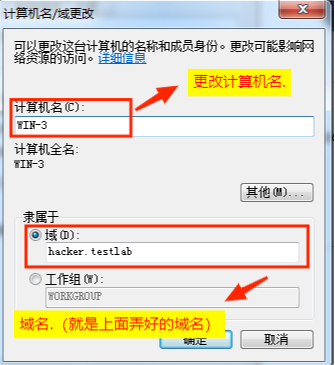 🍓点击 控制面板--->系统和安全--->系统--->找到计算机名点击更改设置--->点击更改.--->更改完成后点击重起计算机.( 也加入域 )