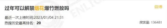 今年情况又有了变化,在网络问政平台上,四川、山东等多地网友询问当地的烟花爆竹规定,「过年可以解禁烟花爆竹燃放吗」甚至冲上了热搜。